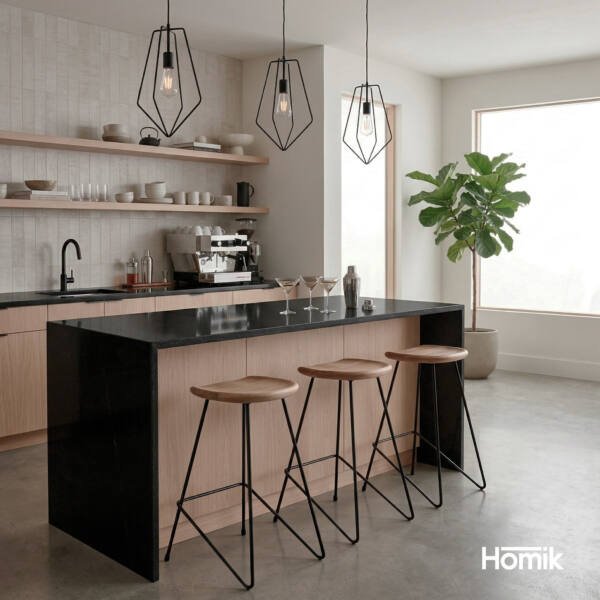 Superficie: Madecor de 15 mm con enchape o canto flexible, aportando un acabado sofisticado